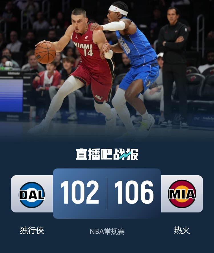 热火险胜独行侠!希罗赛季首秀24+7 韦尔20+18 弗拉格12+7
